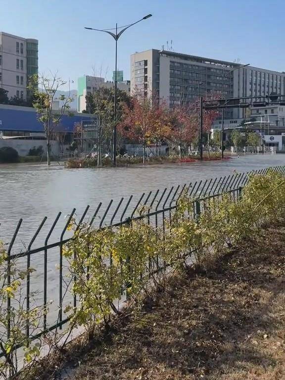 12月4日一早,有网友发布的视频中,杭州天目山路与古墩路路口车道上有严重积水,漫上了一旁的人行道,看上去形成一条小河。另有网友发布的视频中,路边有水管不停向外涌水。有网友发布的图片中,有被困人员在特警帮助下乘坐皮艇脱困。