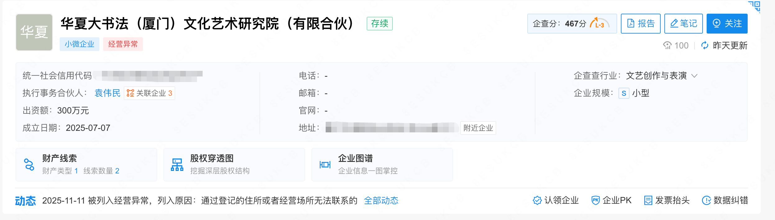 据企查查,华夏大书法文化艺术研究院执行事务合伙人为袁伟民,同时他也是涉事比赛的赛事组委会主任、评审费收款人。据悉,该比赛每件投稿作品收取30元评审费,并设有多个奖项,奖金合计2万余元。