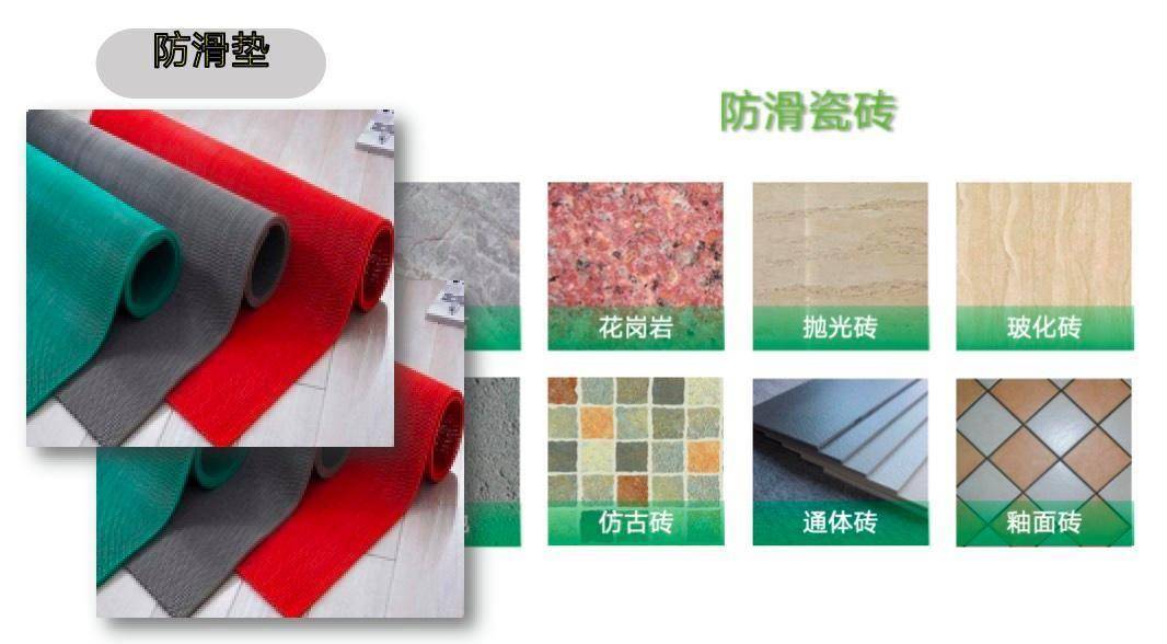 然而,传统方法也存在明显的弊端。防滑垫需要定期清洗,否则容易滋生细菌,且其更换频率较高,长期使用下来成本不菲;防滑砖一旦铺设完成,后期若想更换或调整,不仅工程量大,成本也相当可观。除此之外,市面上大部分防滑砖只能在干燥情况下起到防滑的作用,当防滑瓷砖遇油遇水时,还是不可避免油水覆盖,导致摩擦力大大下降。