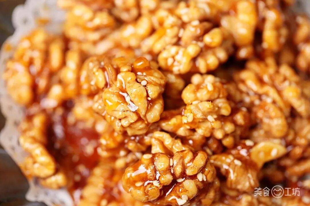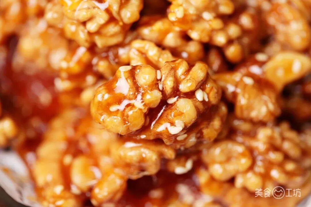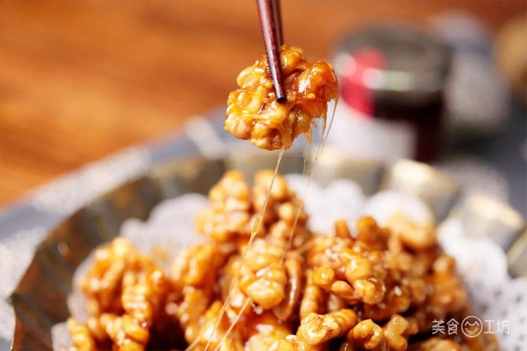 美食君认为这盘琥珀核桃作为餐桌上的下酒菜,也再适合不过了!