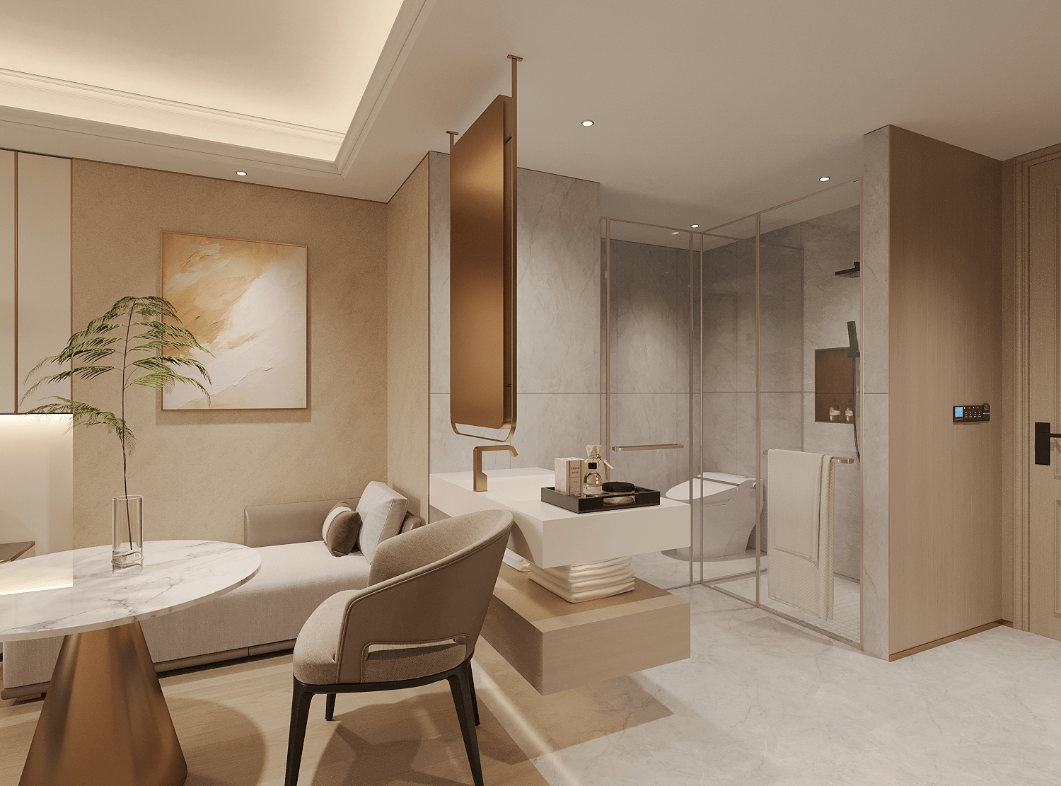 - 卫生间干湿分离,淋浴区地面做防滑处理,坡度控制在1%-2%;配备恒温花洒,水温误差不超过±2℃;马桶旁预留插座,方便安装智能马桶盖。