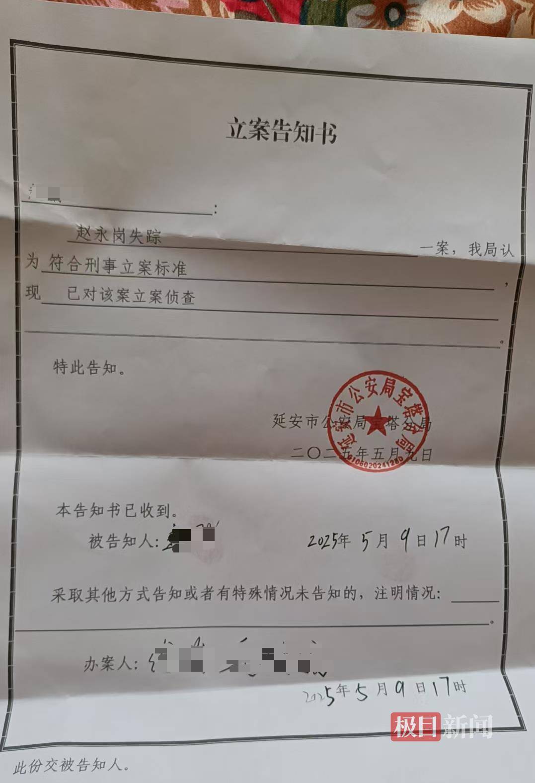 12月5日下午,极目新闻记者联系到宝塔区人民政府,一名工作人员表示,当地确实有一名叫赵永刚的中年男子失踪,目前还未找到,“他喝酒走失了,各部门找了很久都没有找到”,至于具体情况他不太了解。宝塔分局刑警大队一名工作人员也向极目新闻记者证实了此事,分局为此还成立了专案组,但由于他是接警人员,因此具体案情等信息他并不清楚。