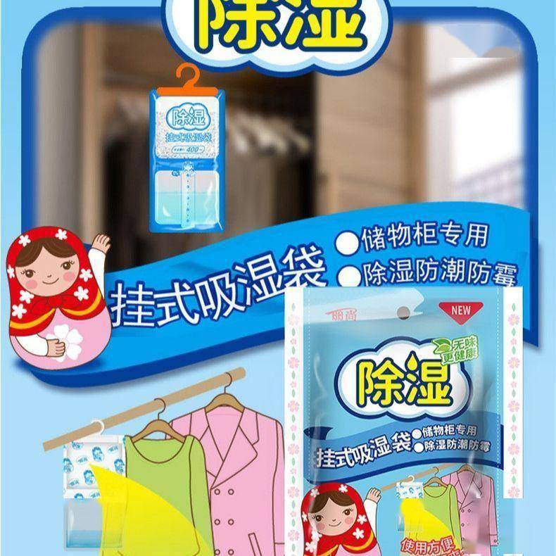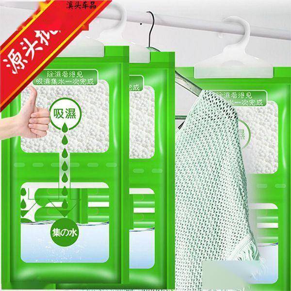 可挂式除湿袋采用环保材料制成,吸湿能力强,使用方便。可以挂在衣柜、鞋柜、储物间等任何需要除湿的地方,有效防止衣物发霉、鞋子异味等问题。透明设计让吸湿效果一目了然。