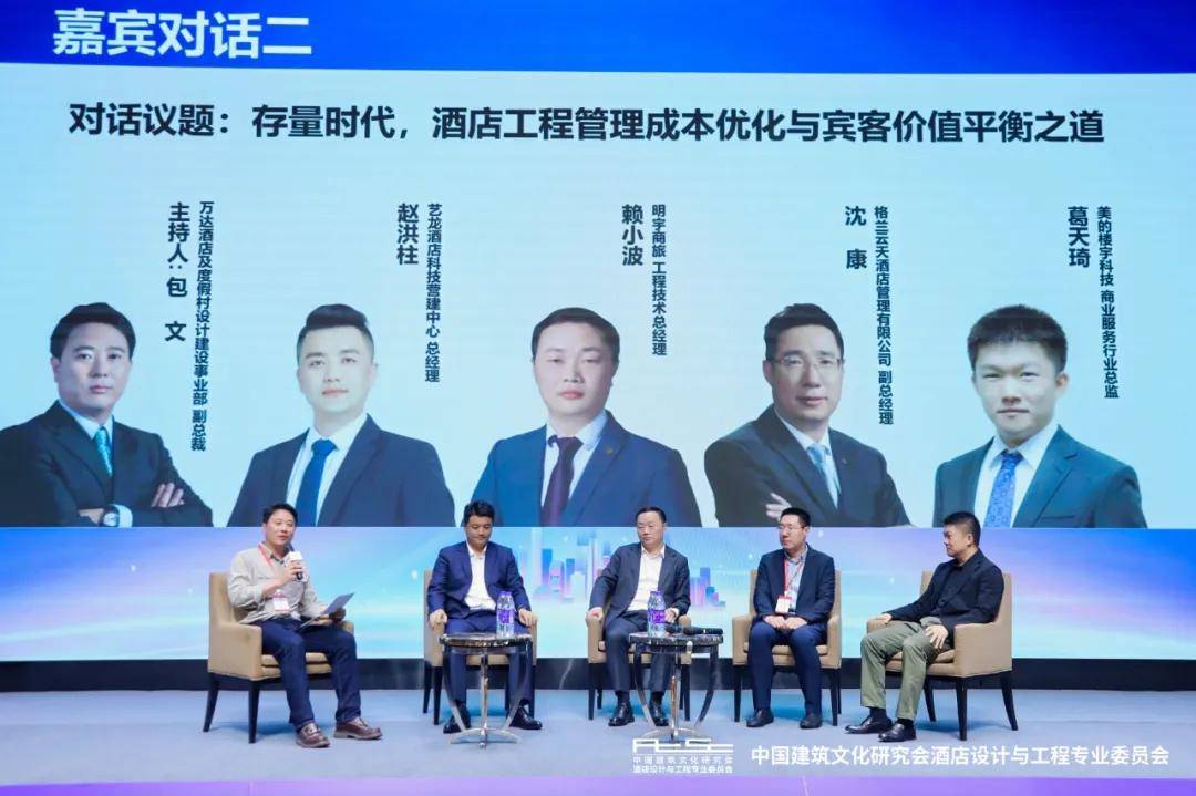 嘉宾对话二《存量时代,酒店工程管理成本优化与宾客价值平衡之道》由万达酒店及度假村设计建设事业部副总裁包文主持,艺龙酒店科技营建中心总经理赵洪柱、明宇商旅工程技术总经理赖小波、格兰云天酒店管理有限公司副总经理沈康、美的楼宇科技商业服务行业总监葛天琦等工程与酒管专家,围绕相关议题,从设备能效提升、智慧化改造、全生命周期成本控制等多维度,探讨了在存量更新背景下实现工程投入精细化与宾客体验价值最大化的协同路径。