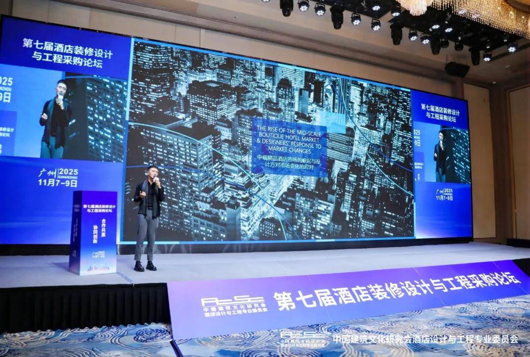 2025年11月7-9日,由中国建筑文化研究会指导,中国建筑文化研究会酒店设计与工程专业委员会主办,美的楼宇科技菱王电梯公司、青岛海信日立空调系统有限公司协办的“第七届酒店装修设计与工程采购论坛-广州站”成功举办并圆满闭幕。本次论坛以"协同创新·合作共赢"为主题,汇聚了众多行业技术专家、设计师、投资方及酒店业主代表参会。