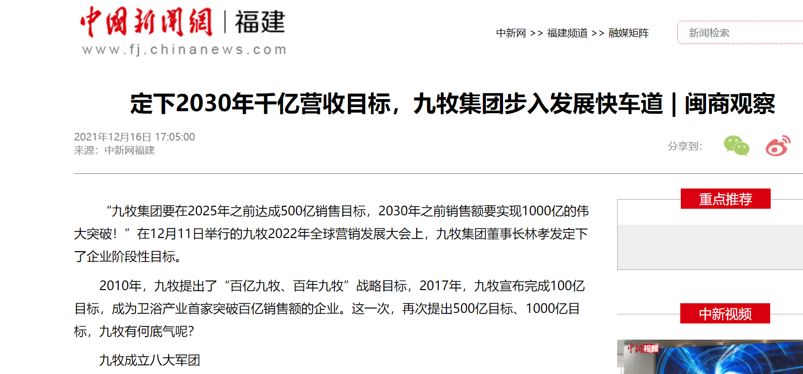 据中国新闻网报道,在前些年的公开会议上,九牧卫浴的创始人林孝发曾多次喊出:“2025年销售额突破500亿,2030年实现1000亿”的豪言壮语,引得当时行业一片沸腾。