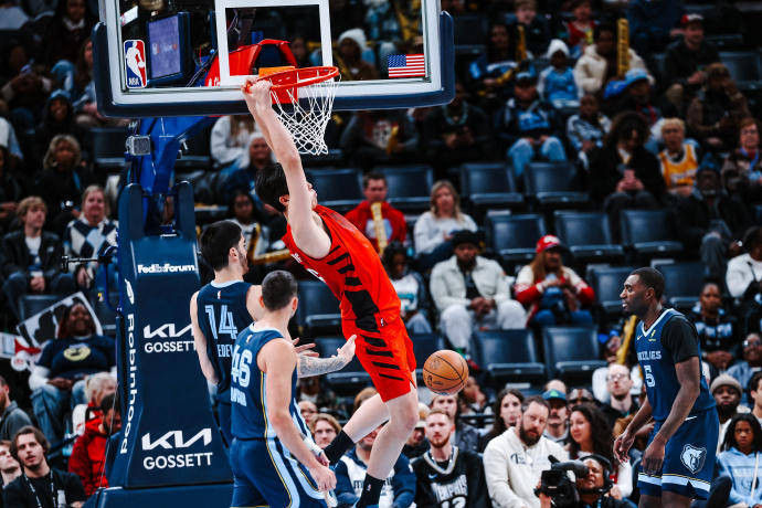转身暴扣!杨瀚森NBA生涯首次首发,拿下4分5篮板2助攻