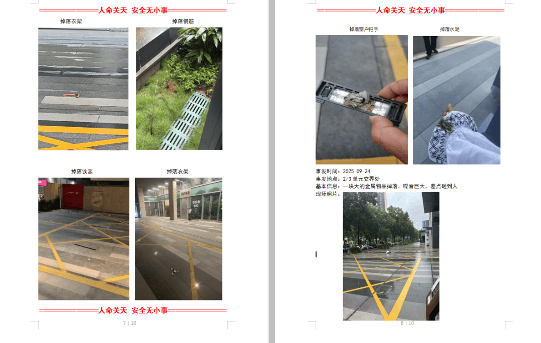 据星河开市客环球商业中心(二期)(以下简称“星河开市客小区”)居民反映,小区自2025年2月入住以来,已发生多起高空坠物事件,坠落物有水泥块、扳手、胶刮,甚至还有宠物猫,类型多样。小区居民认为无防护棚遮挡,是高空坠物多发的原因。