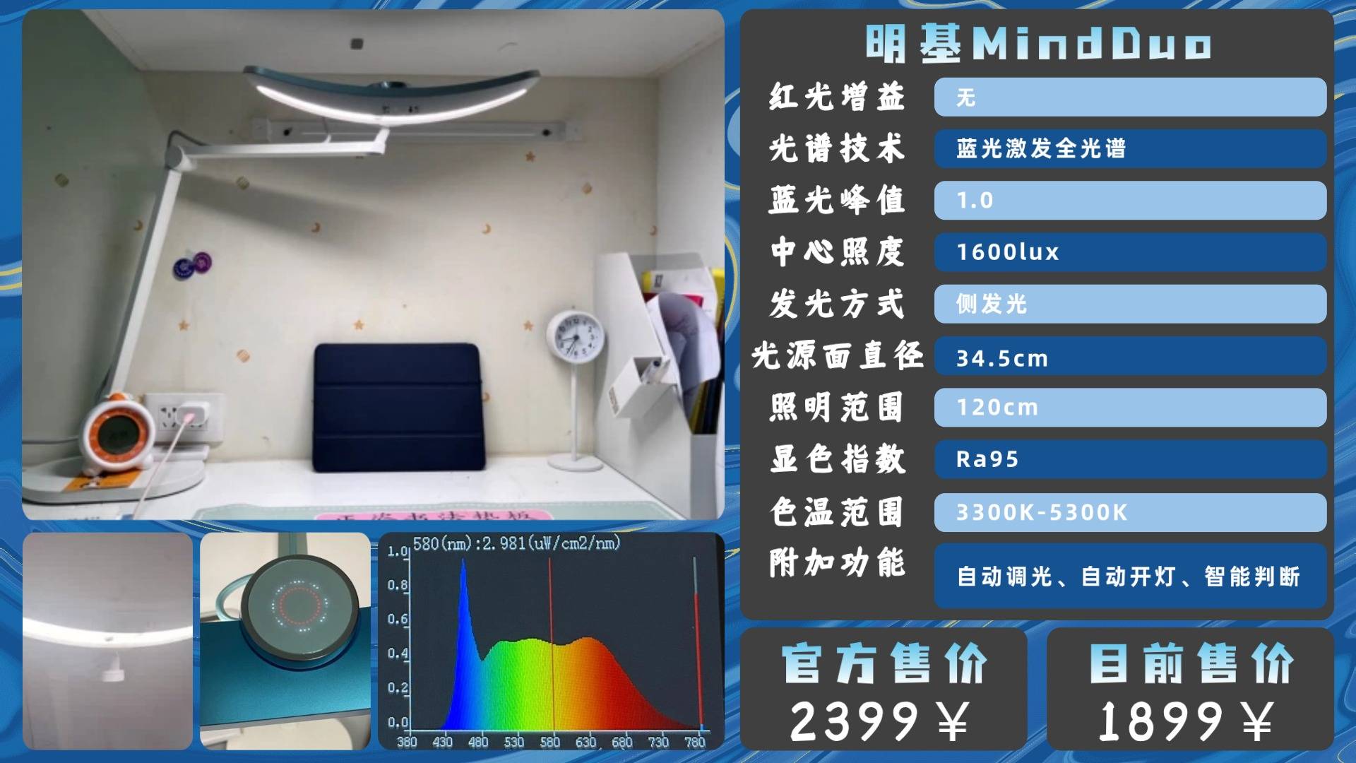 其最大亮点在于顶部的旋钮与手势双重操控,轻旋即可同步调节亮度与色温,挥手亦能实现智能切换,操作直观又充满科技感;搭配自动调光、入座即亮的智能判断系统,使用起来很贴心。不过它的蓝光峰值有点高了,达到了1.0,可能会造成孩子眼疲劳。