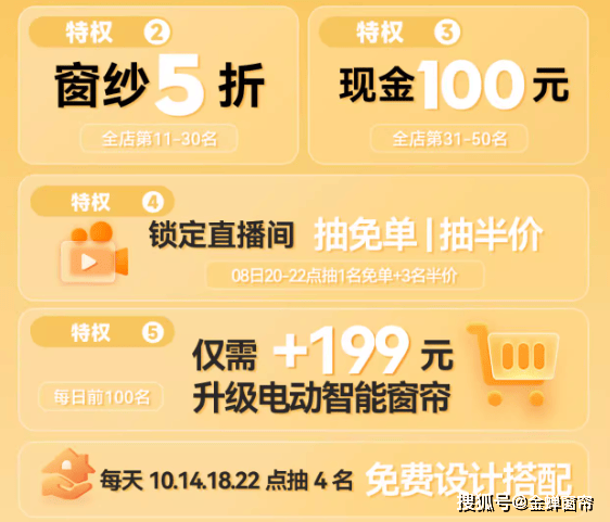 每天前100名,仅需+199元,即可升级电动智能窗帘!同时,每天10/14/18/22整点,抽4名免费设计搭配!