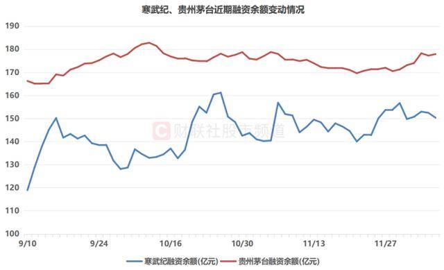 注:寒武纪、贵州茅台近期融资余额变动情况(截至12月8日数据)