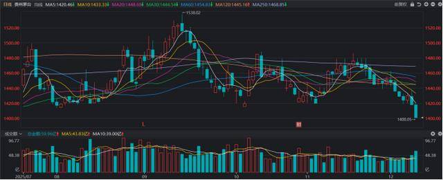 注:贵州茅台近期股价持续走低(截至12月9日收盘)
