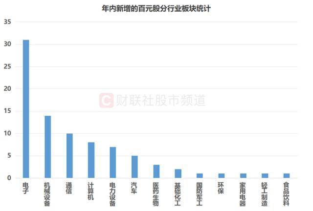 注:年内新增的百元股分行业板块统计(截至12月9日收盘)(财联社 梓隆)