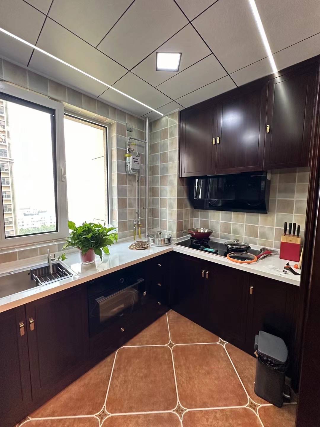 在功能方面,定制橱柜能够根据厨房的空间布局和用户的使用习惯进行个性化设计。比如,可以合理规划收纳空间,设置抽屉、拉篮、转角柜等,让厨房物品摆放更加有序,提高空间利用率。此外,实木橱柜的耐用性也很强,经过精心保养,可以使用很长时间。