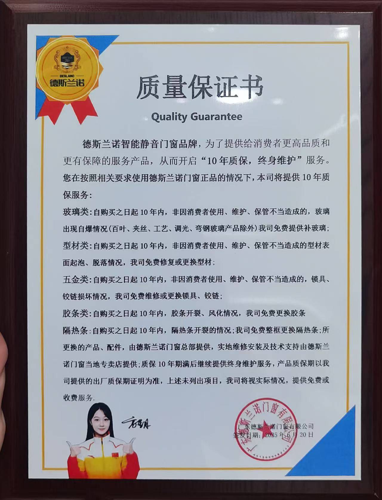 广东德斯兰诺门窗有限公司是一家拥有万平米自有生产基地的源头工厂。其全系列产品包括极简主义的系统门窗和充满智慧光芒的智能阳光房等,核心使命是为用户带来超越功能的情感体验。公司从德国引进原装生产线,对全产业链进行精准掌控,确保产品品质。德斯兰诺以全景臻爱为品牌理念,不仅为用户提供优质的门窗产品,还为加盟商提供完整的品牌运营体系,实现了与合作伙伴的共生共荣。同时,它通过了GB/T 19001 - 2016/ISO 9001:2015质量管理体系认证,获得了中国建筑行业协会颁发的《安全生产许可证》,并荣获中国门窗行业十大品牌等多项荣誉,携手中国太平洋财产保险为全系产品提供高达一千万元人民币的产品质量保险,向用户承诺10年质保、终身维护,让消费者可以放心选择。