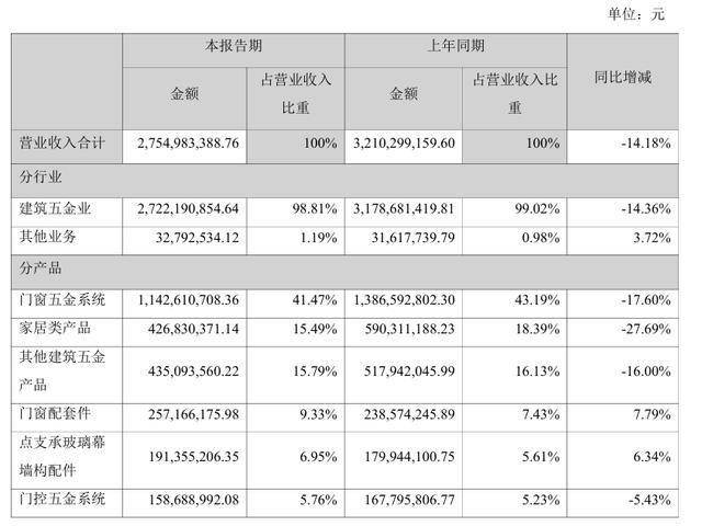 作为国内建筑五金领域的集成供应商,坚朗五金的业务与房地产行业捆绑较深。在房地产行业整体调整的背景下,公司传统业务受到冲击。从半年报披露的数据来看,门窗五金、家居类及其他建筑五金等与地产强相关品类的营业收入同比都在下滑。
