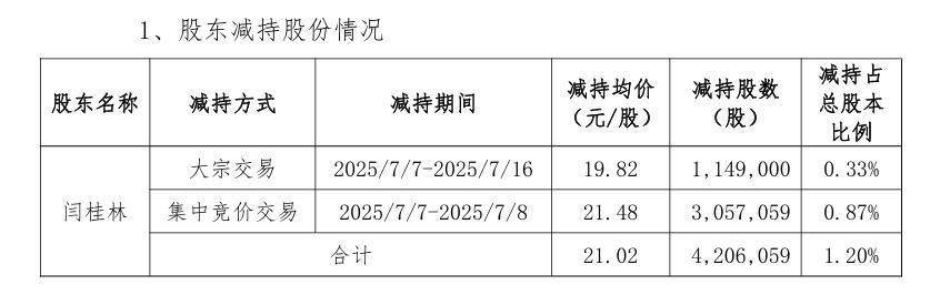 到了7月,闫桂林的减持计划开始实施。据估算,其减持套现金额在8000万元左右。闫桂林的减持计划在2025年8月28日实施完成,合计减持420.6万股,占总股本1.20%,减持之后,闫桂林的持股比例从7.15%降至5.95%。