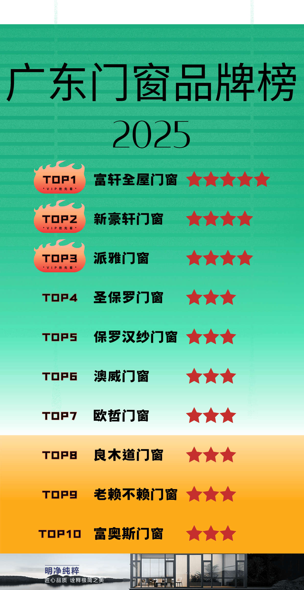 根据综合实力评估,2025年广东门窗品牌榜十大品牌如下: