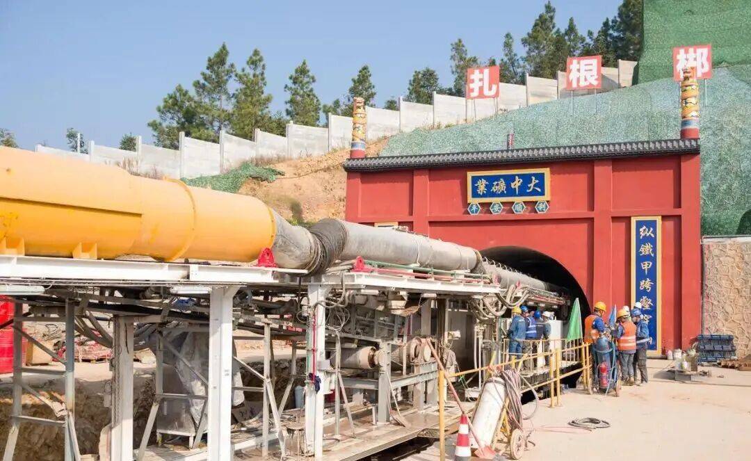 据悉,在运输环节上,该项目建设取得重大突破。“龙源号”盾构机历时13个月,成功贯通7300米运输隧道。这台155米长、直径6.3米的设备曾创下单月掘进1186米的行业纪录。季祝山矿和神家湾选厂直线距离7.5公里,相对高差近600米。与传统公路运输相比,运输隧道的贯通让运输距离由20公里缩短至7.5公里,年运输能力达3200万吨(矿石2000万吨/年、石料1200万吨/年)。