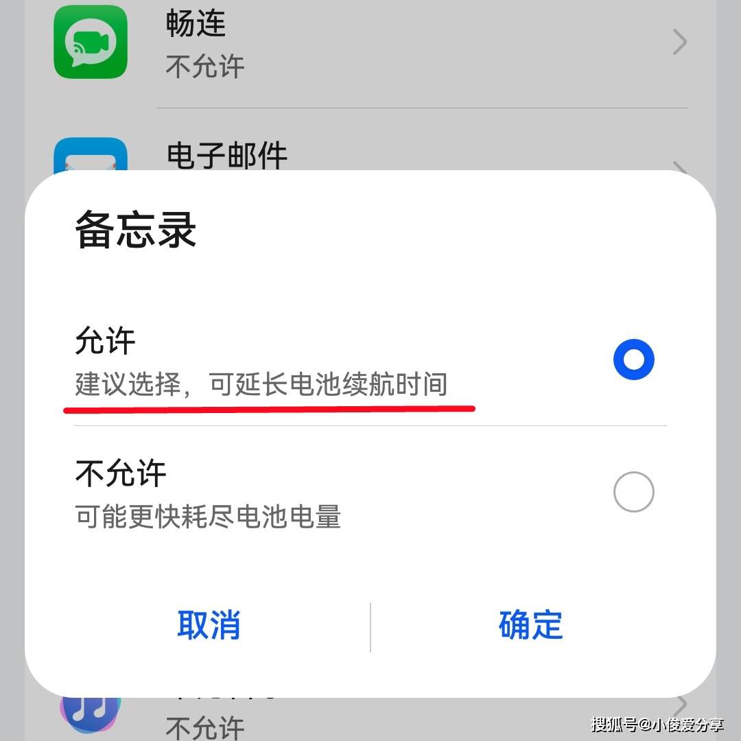 为什么要允许呢?我点开一个应用,你看一下,你看建议选择允许可延长电池续航时间,如果不允许可能更快耗尽电池电量。