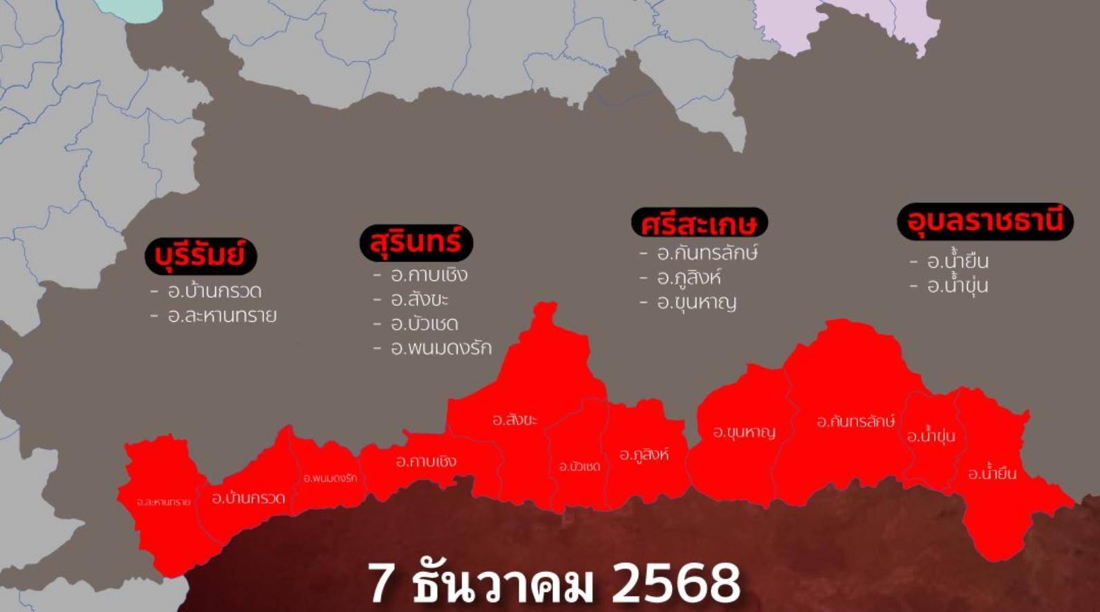 泰国军方与柬埔寨军方,双方指责对方先开火,两名泰国士兵被狙击击伤。泰国和柬埔寨正在边境迅速集结坦克、火炮和远程火箭炮系统。一旦增援部队到位,局势可能在12月8日,全面迅速升级。泰国军方命令泰柬边境沿线四个省份城镇的居民撤离到避难所。柬埔寨国防部发言人马利·索切塔表示,泰国军队在泰柬边境柏威夏地区开火,泰国四色菊府坎塔拉拉克县与柬埔寨军队发生边境冲突,至少两名泰国士兵受伤。泰国媒体报道,泰国总理阿努廷·查恩维拉库尔已向泰国军方下令,全力捍卫国家主权,确保公共安全。