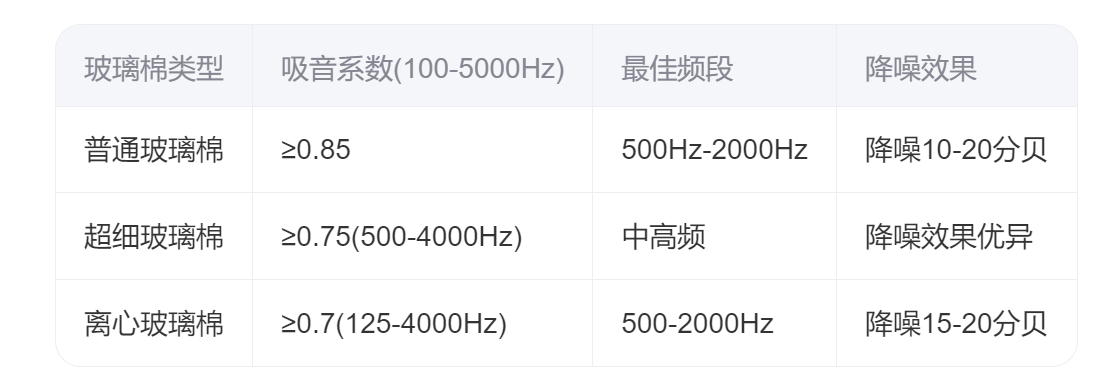 普通玻璃棉在全频段吸音性能最佳,中高频段(500Hz-2000Hz)表现尤为出色,可使传声损失提高15-20分贝。