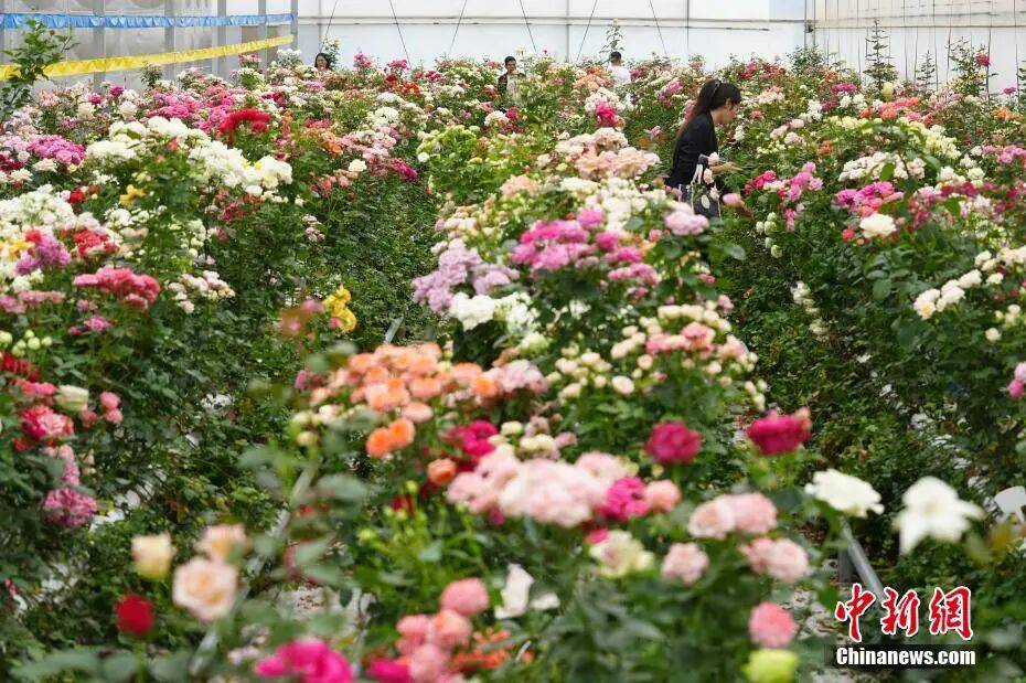 2025年5月18日,由云南省农业科学院花卉研究所等多家机构联合主办的“2025月季自主创新成果推荐会”在昆明斗南国际花卉技术创新中心开幕,集中推出1000余个“中国风”月季切花新品种。图为观众观看展出的月季花新品种。中新网记者 刘冉阳 摄