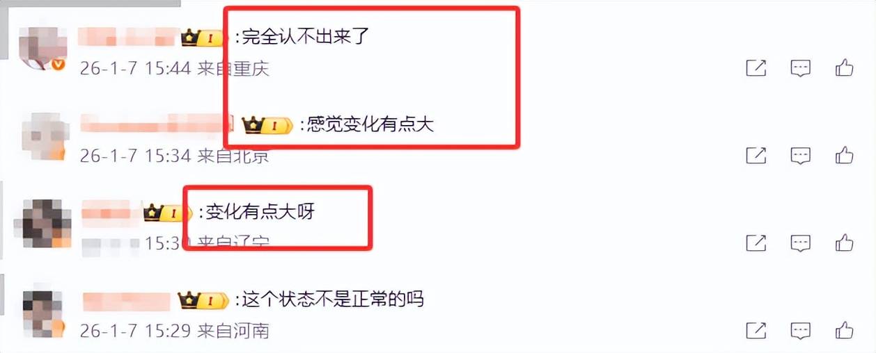 曾经精致的五官荡然无存,苹果肌瘪塌、法令纹明显,她做抬眼的表情时,额头竟然一丝皱纹都没有,这点疑似是医美后遗症。