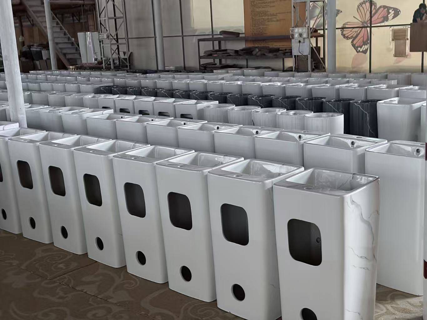 公司主打的陶瓷产品都是一次性烧制而成不易褪色,而且色彩多、颜色丰富,专注色彩整体卫浴。有柱盆、马桶、台上台下洗手盆、挂盆、挂便、水箱蹲便、拖布池等等,全是个性自创手绘艺术色彩釉面,从胚体成型、修胚、喷釉、手彩到烧制,全程精心规划,保障产能充沛。