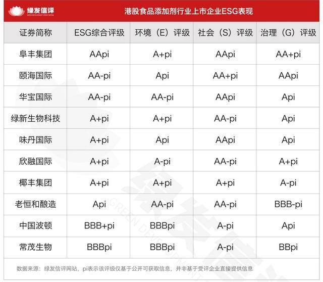 中国财富网讯 在健康消费浪潮与全球可持续发展目标的双重驱动下,食品添加剂行业正经历一场深刻的价值观重塑。其角色已超越传统功能赋予者,转而成为连接农业可持续性、食品安全信任与终端健康需求的关键枢纽。近日,海南绿色发展信用评级有限公司(以下简称“绿发信评”)发布的港股上市企业ESG主动评级结果显示,食品添加剂行业ESG整体表现稳健,领先企业正系统性地将ESG要素融入核心战略,以创新实践回应市场对“更安全、更健康、更绿色”产品的期待,行业可持续发展格局初显。