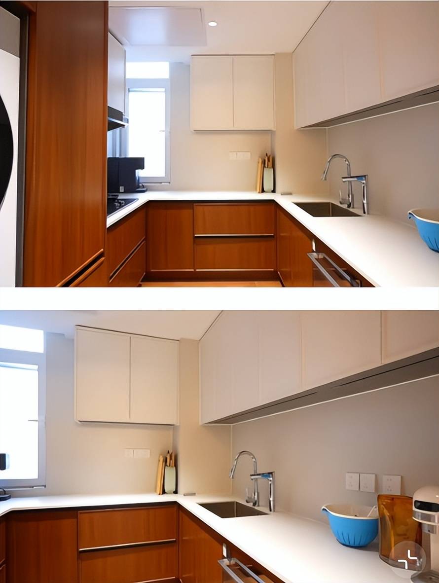 厨房收纳空间倒是增加不少,但风格有点老气,没客厅装得洋气。