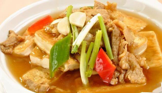 材料:豆腐500克,猪肉100克,大蒜50克,郫县豆酱、酱油、烹饪酒、精盐、淀粉和味精
