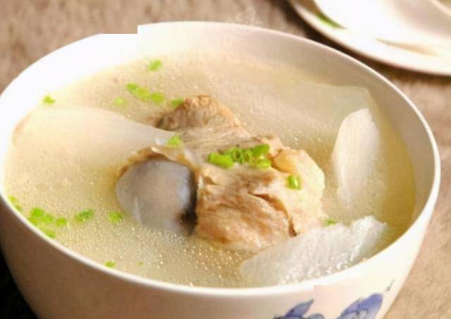 4、改小火炖2小时左右,加入白萝卜,再炖至萝卜熟烂,加盐调味,撒上葱花即可。