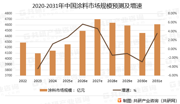 消费者对涂料的装饰性、个性化需求增加,推动涂料产品向多元化、定制化方向发展。例如,艺术涂料通过仿石纹、金属质感等特殊效果,满足高端家装市场的个性化需求。预计2031年我国涂料市场规模将达到4612亿元。