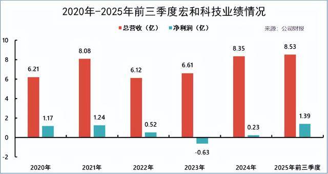 我们先看最劲爆的数据:2025年前三季度,宏和科技实现营业收入8.53亿元,同比增长37.76%。这已经超过了2024年全年的收入(8.35亿)。更夸张的是净利润高达1.39亿元,同比2024年前三季度的区区几百万,增幅接近1700%!