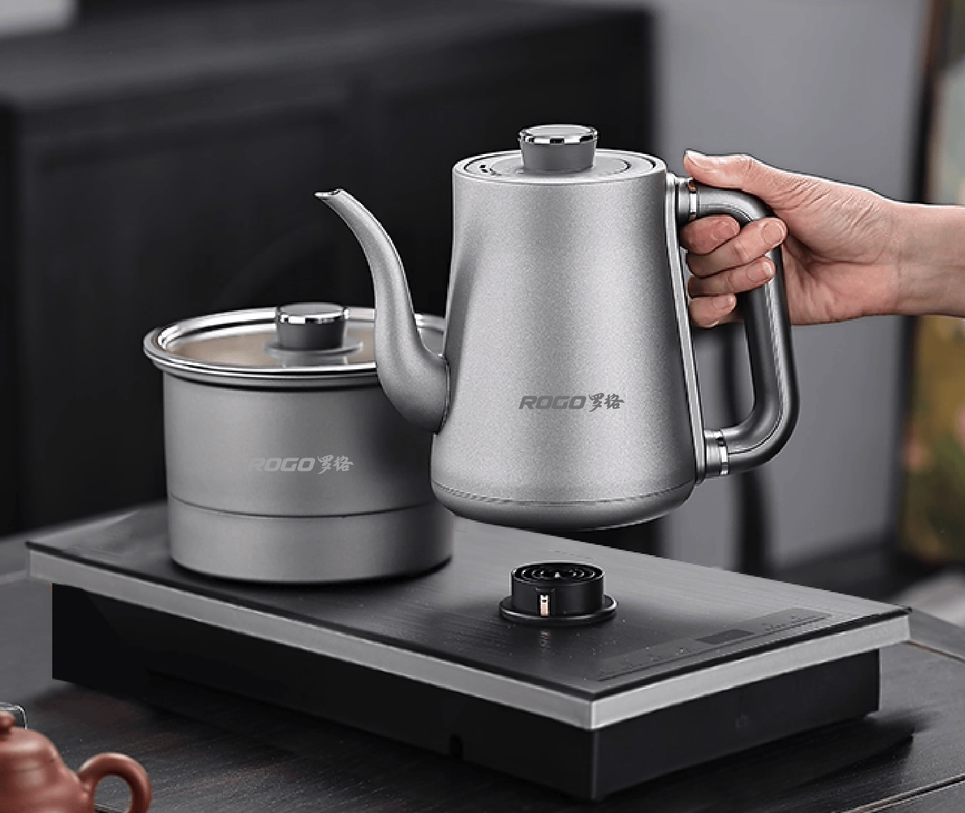 从柴灶上的粗陶釜,到茶席上的紫砂壶,再到今天桌角的罗格钛沏茶器,茶器的形态一直在进化:从被动接受到主动调控,从耗时耗力到高效便捷。藏在茶器进化背后的核心追求从未改变:我们最终想要的,是一杯温度、浓淡、口感都恰到好处的茶。