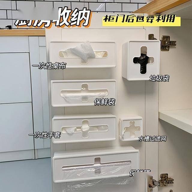 - 神操作7:柜门、抽屉内部“精装修”。柜门内侧挂保鲜袋分割盒、锅盖架;抽屉里用可自由分隔的餐具托盘、碗碟架,把空间划分得清清楚楚,东西不会再晃来晃去一团糟。