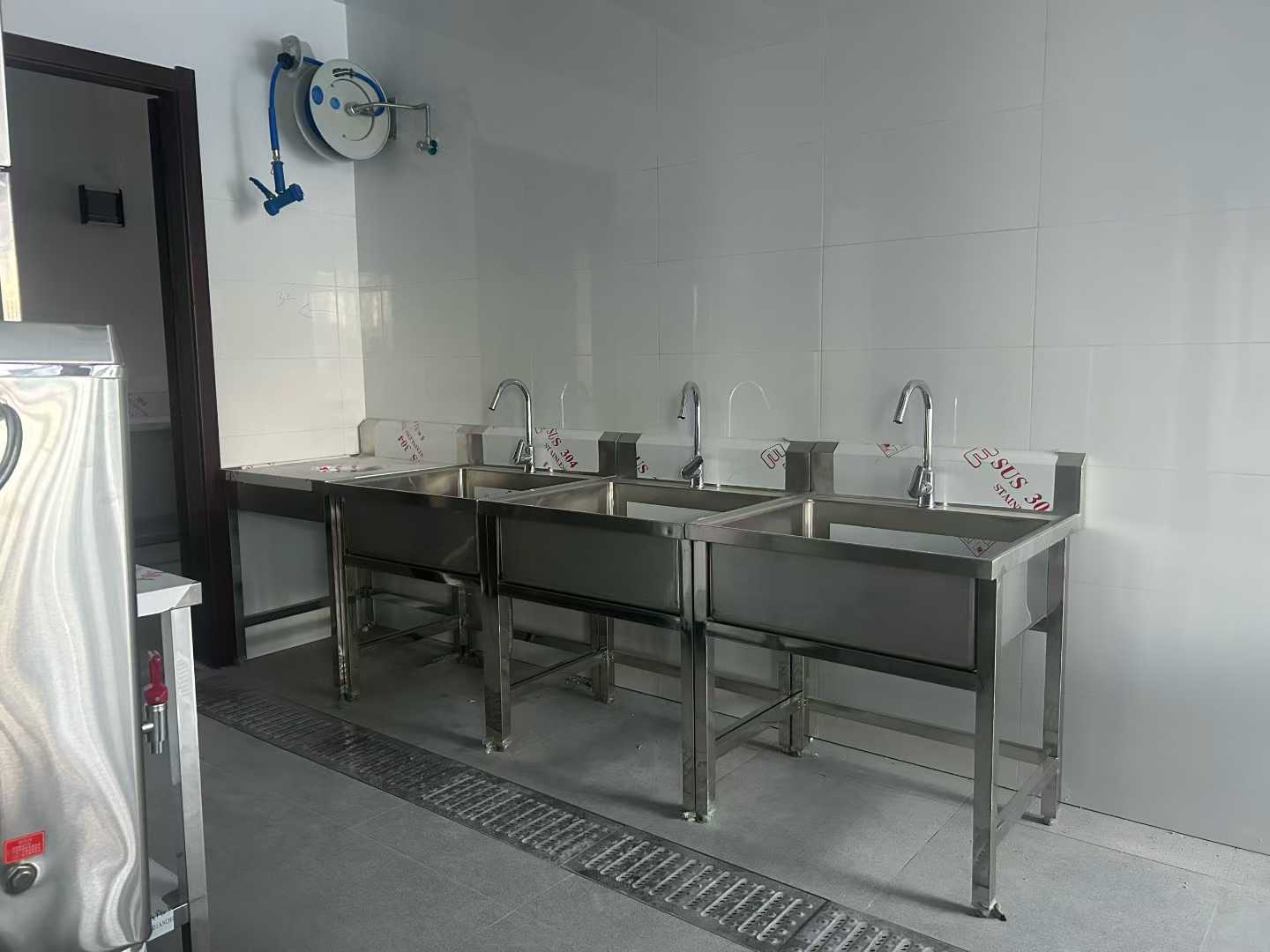 分设蔬菜、肉类、水产专用清洗池,标识清晰