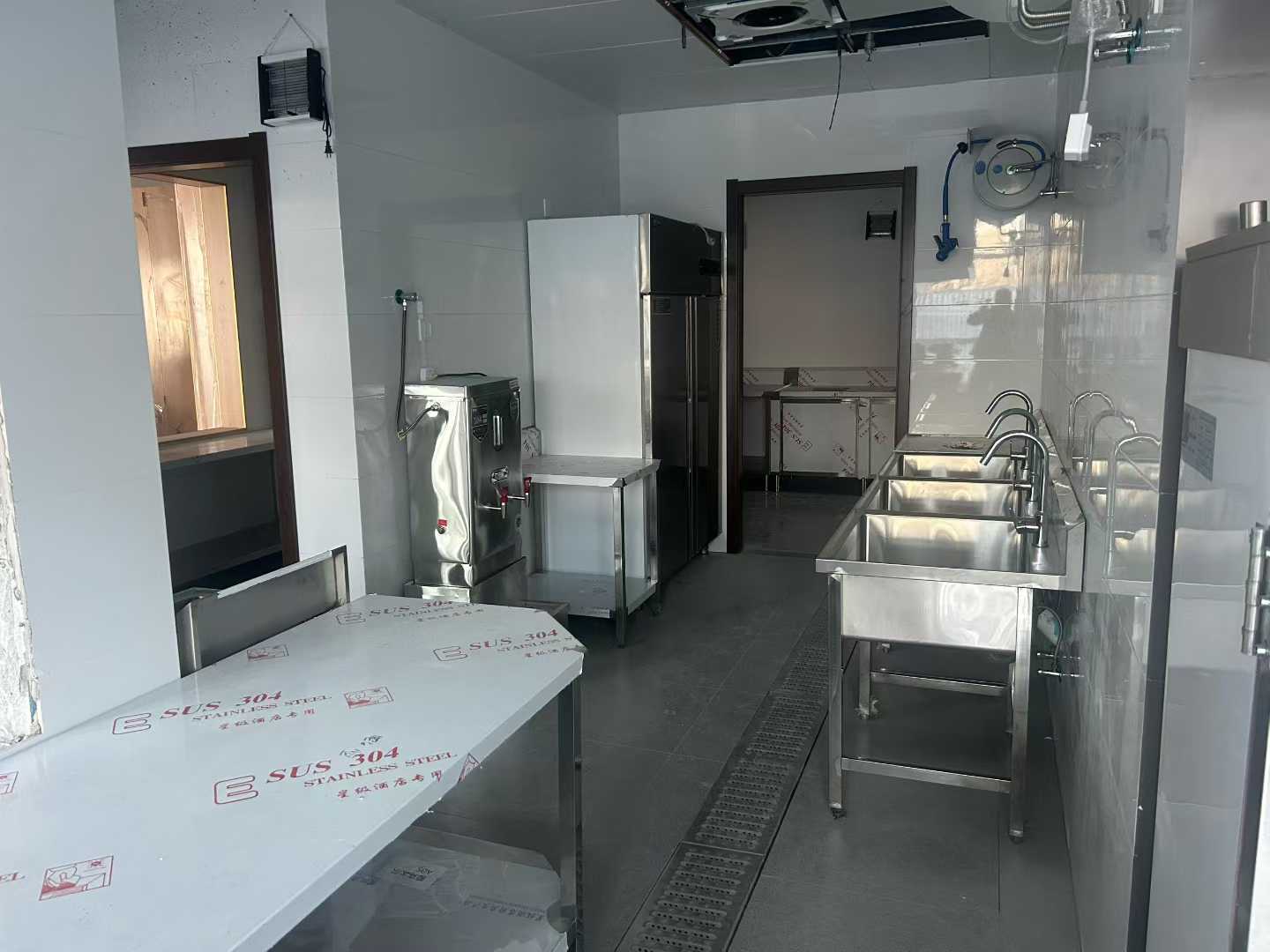 配备灶台、蒸箱、烤箱等,需完善排烟系统
