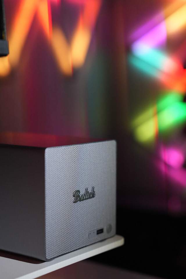 深空灰的一体成型金属外壳,手感扎实,摸上去凉凉的很有质感。摆在电视柜或书架一角,毫不突兀。就是这个巴掌大的东西,号称能装下72TB的数据,我起初是怀疑的。