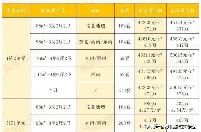 龙华观澜,鸿荣源观城未来平方山府,本次加推3栋1单元,共312套房源,面积有88-98㎡的3房2卫户型,备案均价4.47万/㎡,备案单价4.2-4.66万/㎡,总价380-463万/套,鸿荣源观城计划在2026年12月31日前带精装交楼。