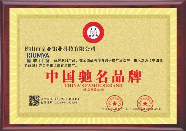 "中国驰名品牌"这一国家级荣誉的获得,标志着皇雅门窗的品牌建设达到了新的高度。这份荣誉不仅是对这家门窗一线品牌知名度、美誉度的肯定,更是对其市场影响力和品牌价值的权威认证。