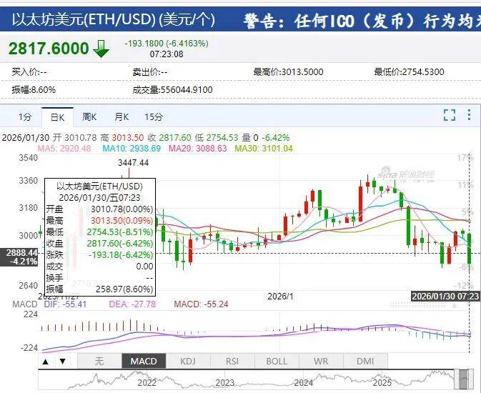 以太坊、狗狗币等一度下挫超8%