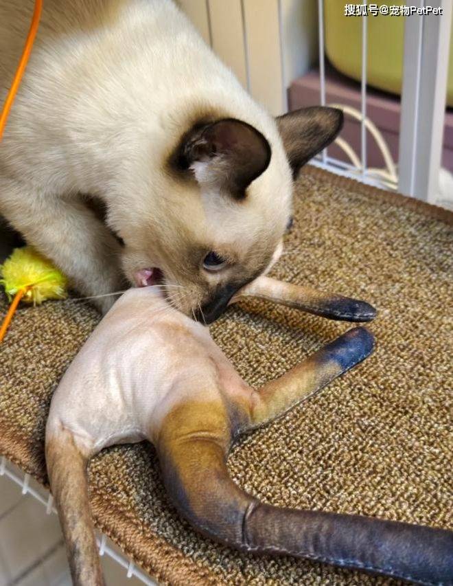 有些则直接无视,继续睡自己的觉,完全不被这个所谓的“分身”打扰;还有像那只暹罗猫一样,将其视为新玩具或磨牙工具,抱着又啃又咬。