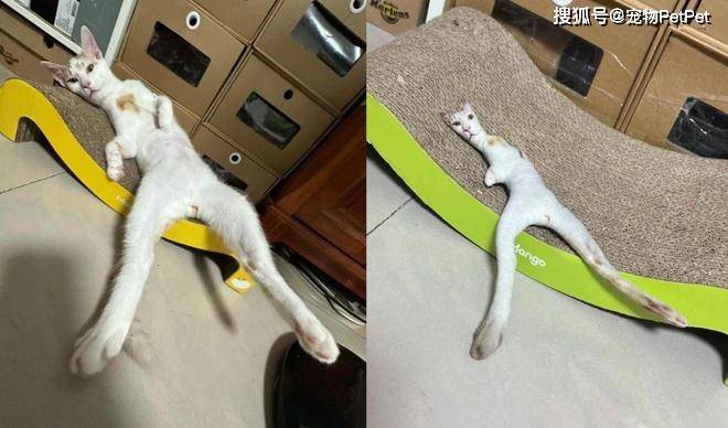 一边是Kumo本尊悠闲地躺在猫抓板上,伸展着修长的身躯;另一边则是根据这张照片定制的“老鼠干”抱枕,被放在同款猫抓板上。