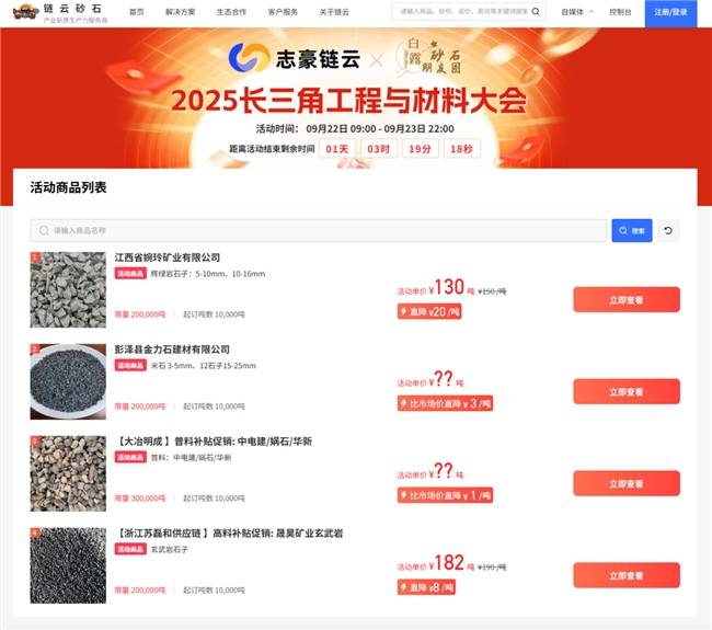 发布会现场,[链云砂石] 平台的线上销售能力迎来首次实战检验,平台集中推出高标辉绿岩、赤峰玄武岩、江西普高料、高标天然砂等各类优质砂石产品,依托平台创新灵活的交易模式与高效的供需匹配机制,现场线上支付意向金锁单货量达 94万吨。这一成绩不仅刷新了行业单次线上砂石销售纪录,更以 “5 分钟完成传统模式下商家 1 个月销售量” 的效率,直观展现了数字化平台对传统砂石销售模式的颠覆性改变,彻底打破了以往砂石交易中信息不对称、流通效率低的痛点。