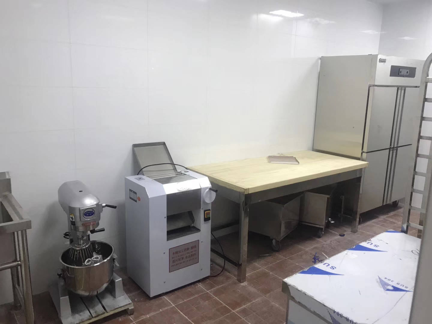 面点间:如果食堂提供馒头、包子等主食,必须配备大型和面机、压面机以及层架式醒发箱,以满足大批量面食制作。