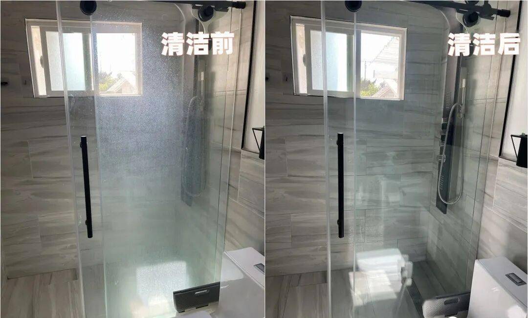 ✔淋浴房玻璃:陈年水渍一扫而净,看着都觉得爽: