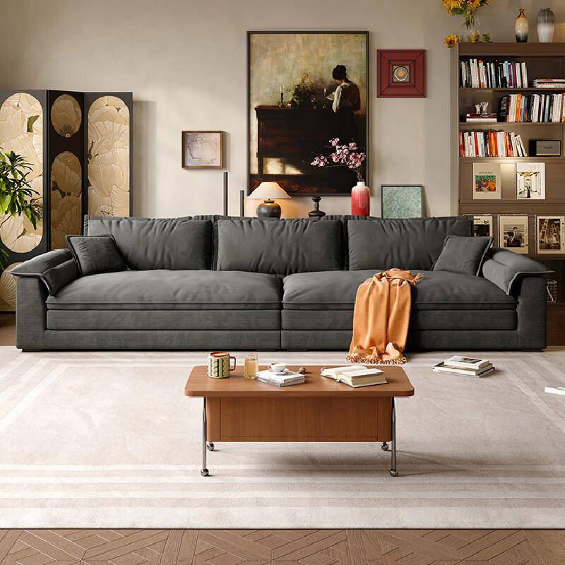 2.宽敞沙发设计:3.4米宽大的沙发设计,让每个家庭成员都能舒适入座,非常适合亲友聚会时使用。这个空间得以轻松容纳多人,无论是游戏还是聊天,都能享受轻松的氛围。