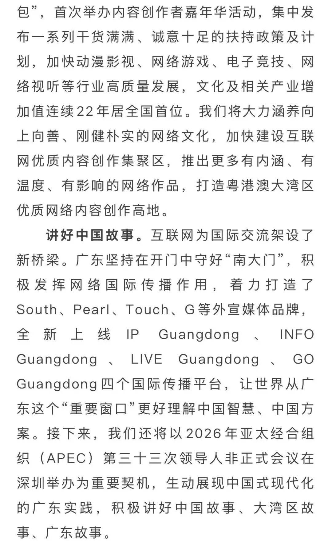 以正面声音、主流价值、时代新风塑造网络空间,鲜明唱响“南粤儿女心向党、改革开放走在前”的时代凯歌